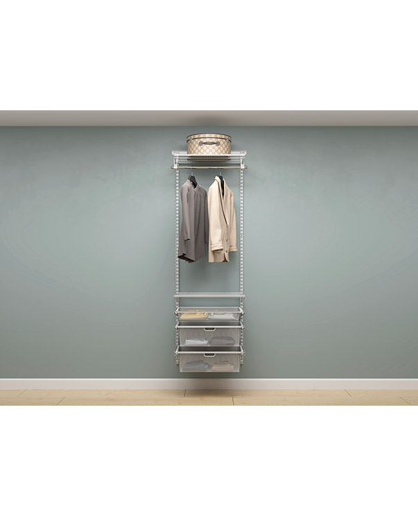 В комплект входят несущие рельсы и навесные направляющие, полки, штанги, аксессуары, крепежные элементы. Можно докупить множество дополнительных компонентов для гардеробной системы.