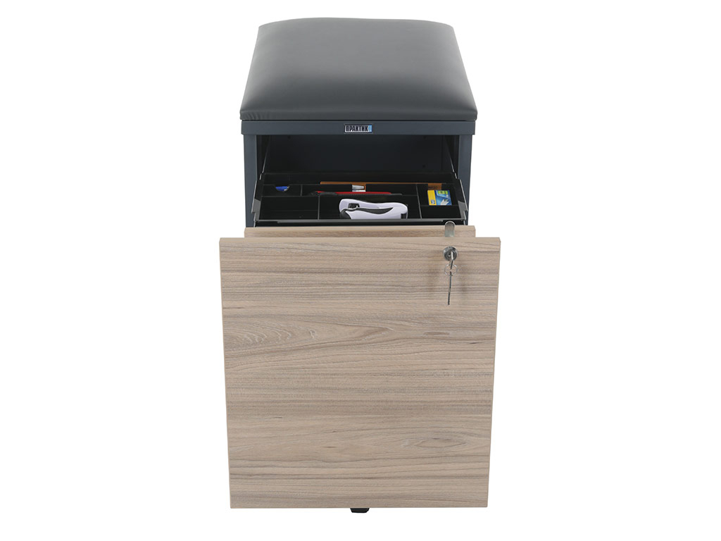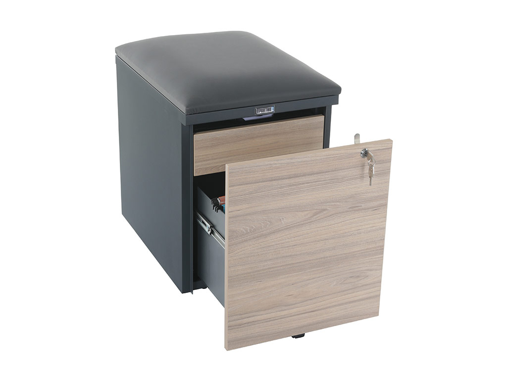 Тумба офисная с пуфом Практикант 2 ящика (антрацит/вяз)