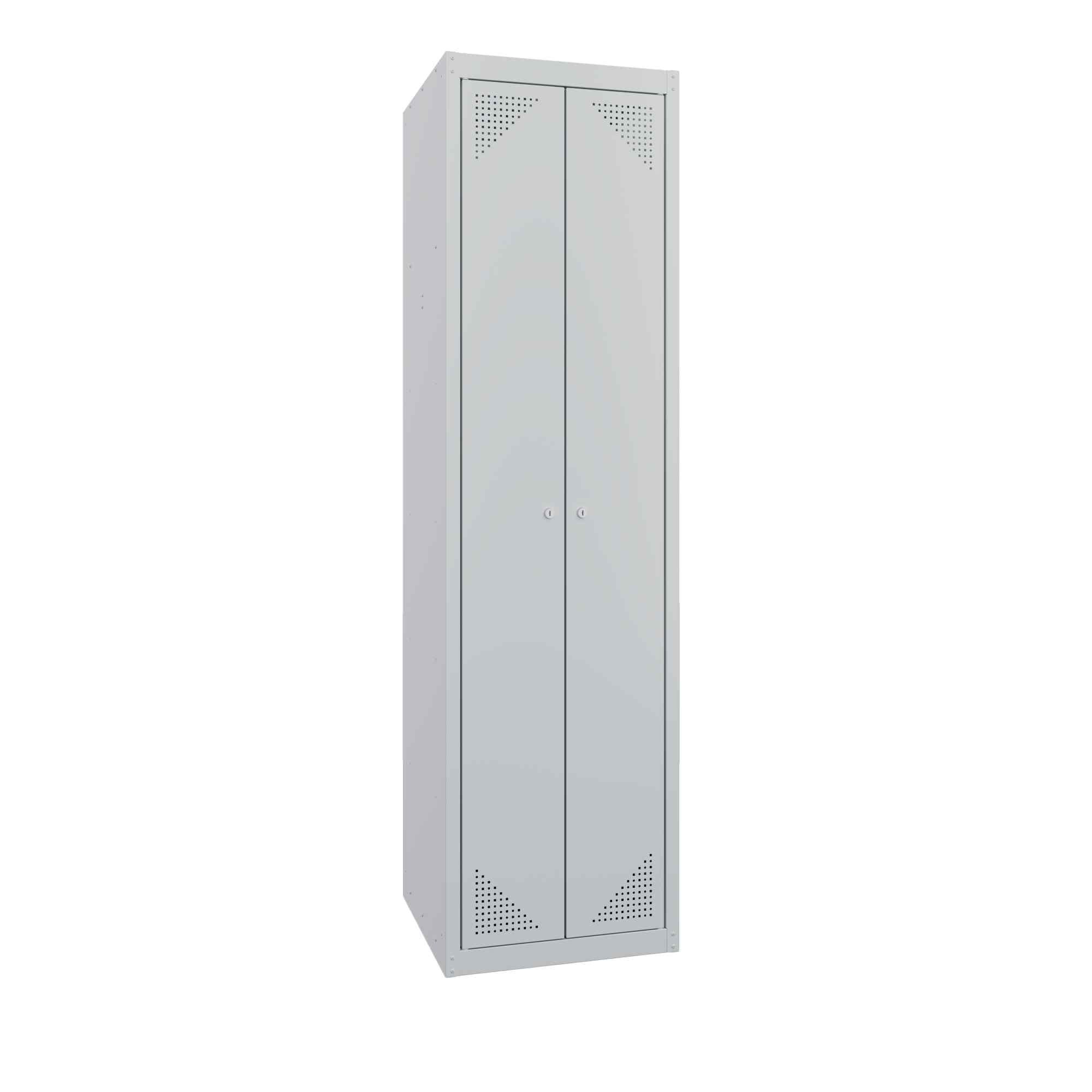 Двери шкафа сверху и снизу имеют вентиляционные отверстия-жалюзи, дверца запирается на замки повышенной надежности.