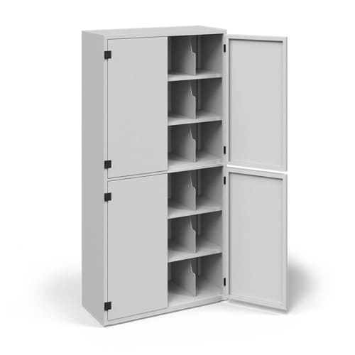 Каждый комплект СИЗ размещается в отдельной секции размером 250×203×325 мм, что исключает перепутывание, деформацию и перегрузку оборудования. Благодаря продуманной конструкции шкаф обеспечивает количественную и качественную сохранность средств защиты в течение всего срока хранения и поддерживает их в постоянной готовности к использованию.