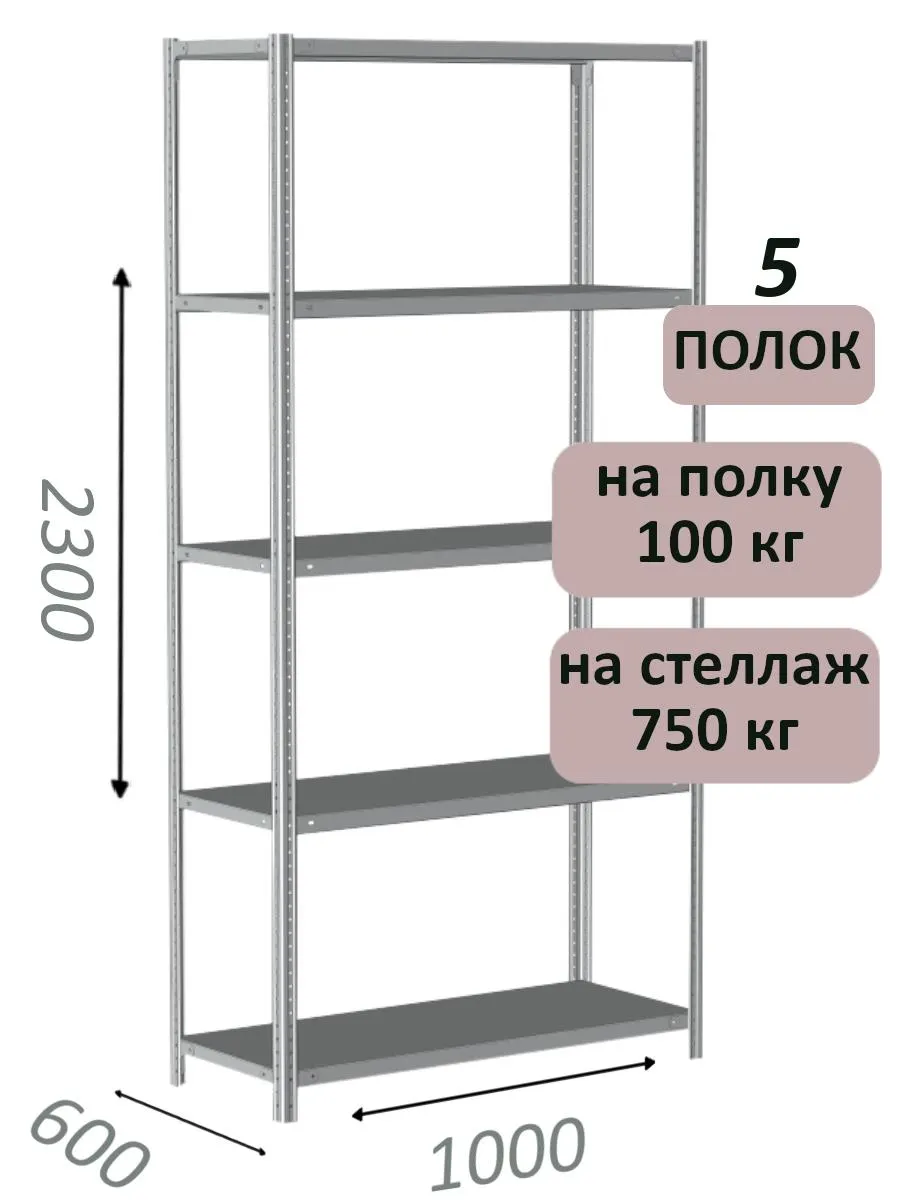 Чтобы уточнить цену и заказать доставку Стеллаж металлический полочный МС 2300х1000х600, 5 полок, 100 кг на полку, светло-серый в Москве, звоните по телефону или закажите обратный звонок.