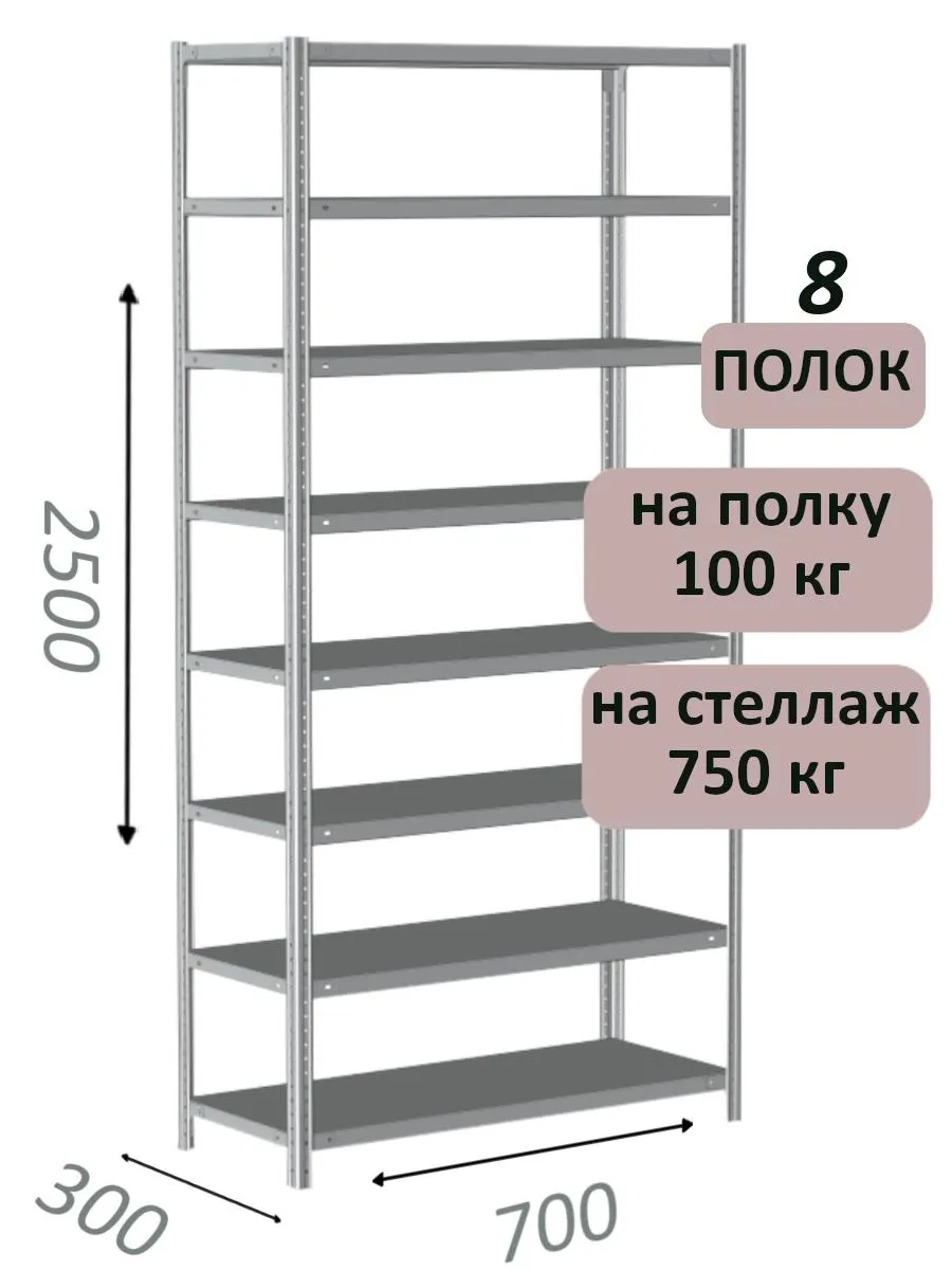 Чтобы уточнить цену и заказать доставку Стеллаж металлический полочный МС 2500х700х300, 8 полок, 100 кг на полку, светло-серый в Москве, звоните по телефону или закажите обратный звонок.