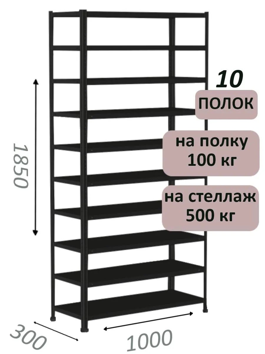 Стеллаж MS Standart 185х100х30, 10 полок, чёрный
