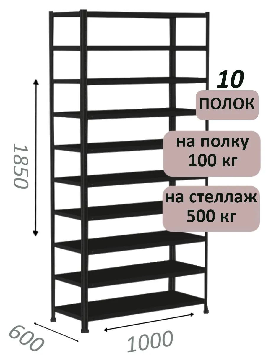 Чтобы уточнить цену и заказать доставку Стеллаж MS Standart 185х100х60, 10 полок, чёрный в Москве, звоните по телефону или закажите обратный звонок.