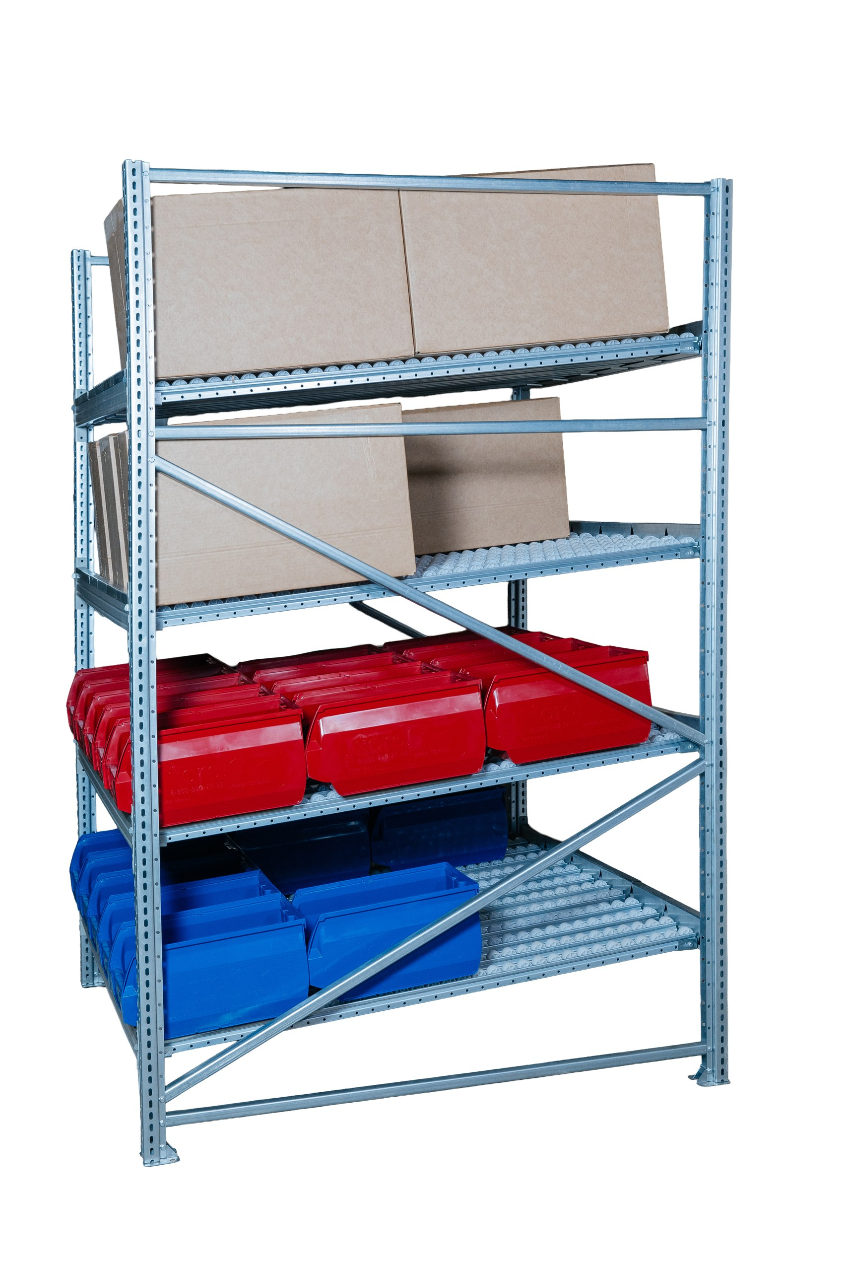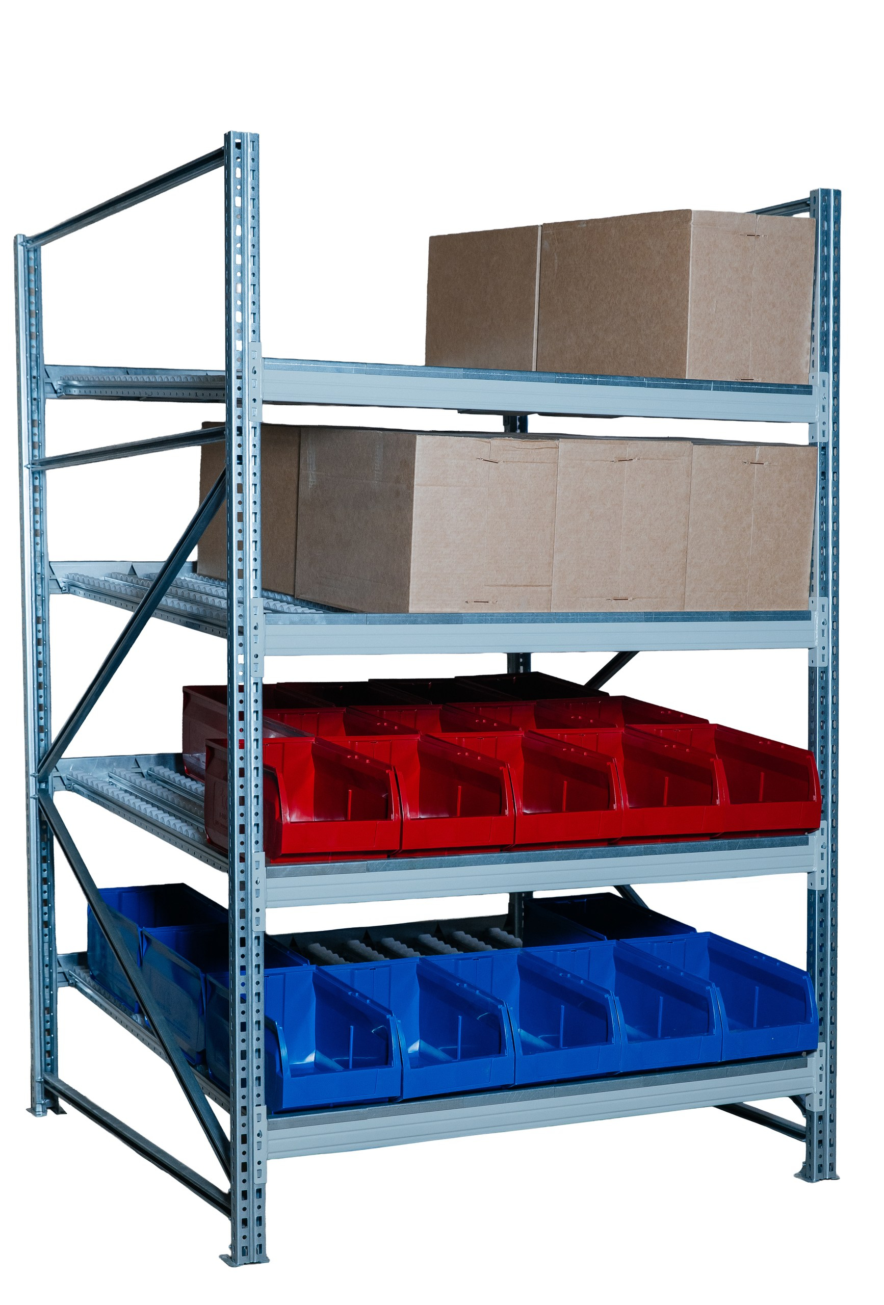 Гравитационный стеллаж с роликовыми полками 1600х1200х1300, 4 яруса