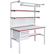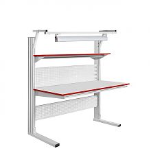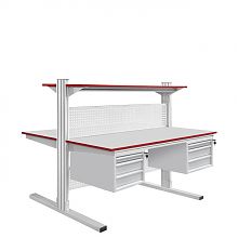 Модульная конструкция дает возможность оснастить стол дополнительным оборудованием: подвесными тумбами, перфорированными панелями, электропанелями, планкой для крепления лотков, полками для приборов оборудования, полкой приборной нижней, освещением рабочей поверхности, угловым столом, крючками для инструментов и другим дополнительным оборудованием и оснащением.