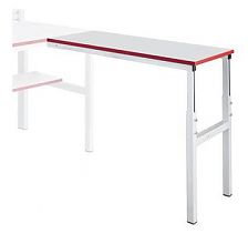 Металлический каркас стола выполнен из П-образного профиля, покрытого износостойкой порошковой краской светло-серого цвета RAL7035. Высота столешницы регулируется в пределах от 650 мм до 950 мм. Распределенная нагрузка на стол - до 300 кг. Конструкция стола позволяет оснастить его дополнительным оборудованием.