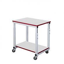 Стол оснащен четырьмя колесными опорами две из них с механизмом фиксации. Столешница толщиной 25 мм., изготовлена из ламинированного ДСП. Износостойкое покрытие из промышленного пластика обладает высокой стойкостью к термическим и механическим нагрузкам. Цвет боковой кромки стола - бордовый.