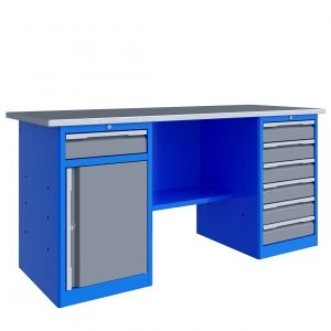 Верстак серииT echnic 201.68.3 состоит из столешницы шириной 1996 мм, тумбы P6 с шестью малыми ящиками, тумбы P8 с малым ящиком и отделением с дверью и одной полкой и полки-стенки. Предназначен для выполнения сборочных, ремонтных, слесарных, монтажных и других видов работ на производстве, в сервисных центрах, мастерских, гаражах, а также для обучения технологии в учебных заведениях.
