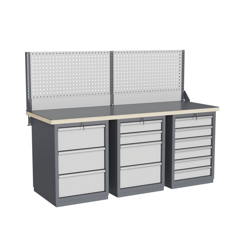 - широкий выбор различных тумб позволяет получить более 50 различных вариантов верстаков и рабочих столов под любые задачи;