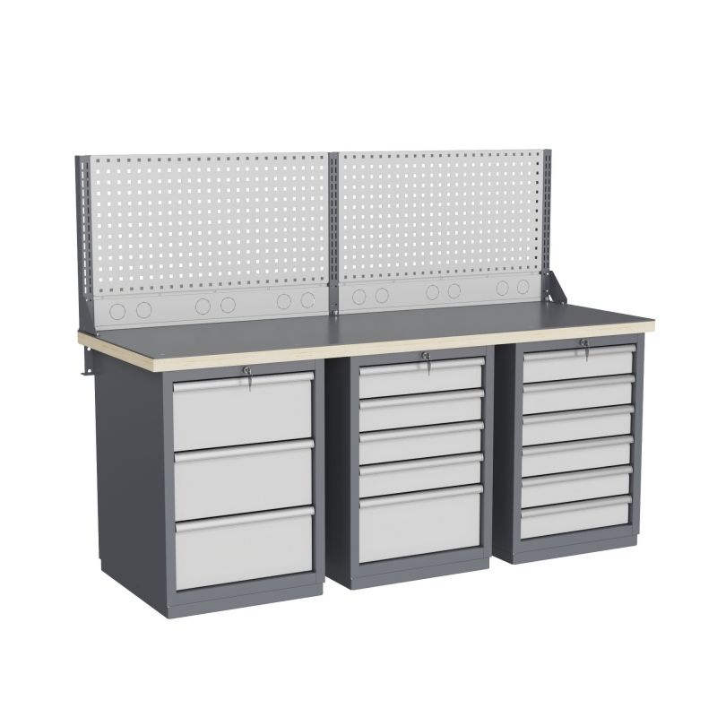 - широкий выбор различных тумб позволяет получить более 50 различных вариантов верстаков и рабочих столов под любые задачи;